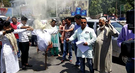 यूकेडी ने फूंका उच्च शिक्षा मंत्री का पुतला