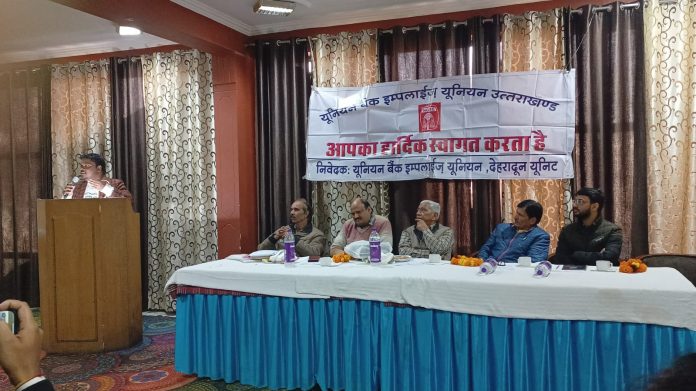 देहरादून – देहरादून में यूनियन बैंक इम्प्लाईज यूनियन की महत्वपूर्ण बैठक संपन्न हुई। बैठक की अध्यक्षता संगठन के अध्यक्ष के.सी ध्यानी ने की। बैठक में ऑल इंडिया यूनियन बैंक स्टाफ फेडरेशन के चेयरमैन एस.डी मिश्रा व कोषाध्यक्ष अनिल सिंह उपस्थित रहे। बैठक का संचालन महामंत्री टीपी शर्मा द्वारा किया गया।