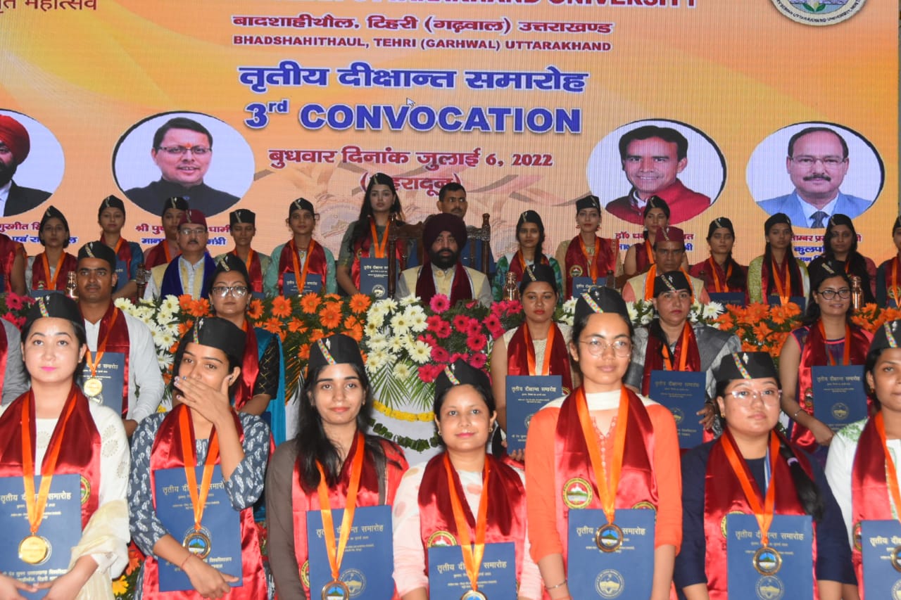 विश्वविद्यालय के कुलपति डा. पी.पी.ध्यानी ने तीसरे दीक्षांत समारोह में उपस्थित लोगों को विश्वविद्यालय की उपलब्धियों, नवाचारों व क्रियाकलापों की जानकारी प्रदान की। कार्यक्रम में कुल सचिव खेमराज भट्ट ने उपस्थित लोगों का धन्यवाद ज्ञापित किया। इस दौरान विभिन्न विश्वविद्यालयों के कुलपतिगण, कार्य परिषद और विद्या परिषद के सदस्य, उच्च शिक्षा के संस्थानों के अध्यक्ष, निदेशक व उपाधि एवं पदक से अलंकृत होने वाले छात्र-छात्राऐं उपस्थित रहीं।