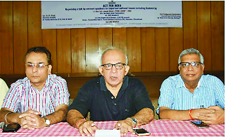 देहरादून। 12 अगस्त को ‘एक्ट फॉर इंडिया’ राष्ट्रीय महत्व के विषयों एवं राष्ट्रीय सुरक्षा पर एक संगोष्ठी आयोजित करेगा। यह जानकारी शुक्रवार को मुख्य संयोजक अशोक घिल्डियाल ने प्रेस क्लब में दी। अशोक घिल्डियाल ने बताया कि इस संगोष्ठी में सेवानिवृत्त लेफ्टिनेंट जनरल बीएस अपना व्याखान देंगे। उनके व्याख्यान का विषय जम्मू-कश्मीर की नाजुक परिस्थिति होगा। इसी प्रकार रक्षा विशेष कर्नल आरएन सिंह विश्व आतंकवाद और उसका भारत से संबंध विषय पर चर्चा करेंगे जबकि राजनीतिक विश्लेषक पी कुलश्रेष्ठ ‘क्या आतंकवाद एक विचारधारा है’ पर चर्चा करेंगे। पी कुलश्रेष्ठ ने ही धारा 35 ए पर जनहित याचिका दायर की है। एफआरआई के दीक्षांत सभागार में दोपहर 3 बजे से गोष्ठी प्रारंभ होगी, जिसमें अति महत्वपूर्ण राष्ट्रीय विभूतियां उपस्थित रहेंगी।