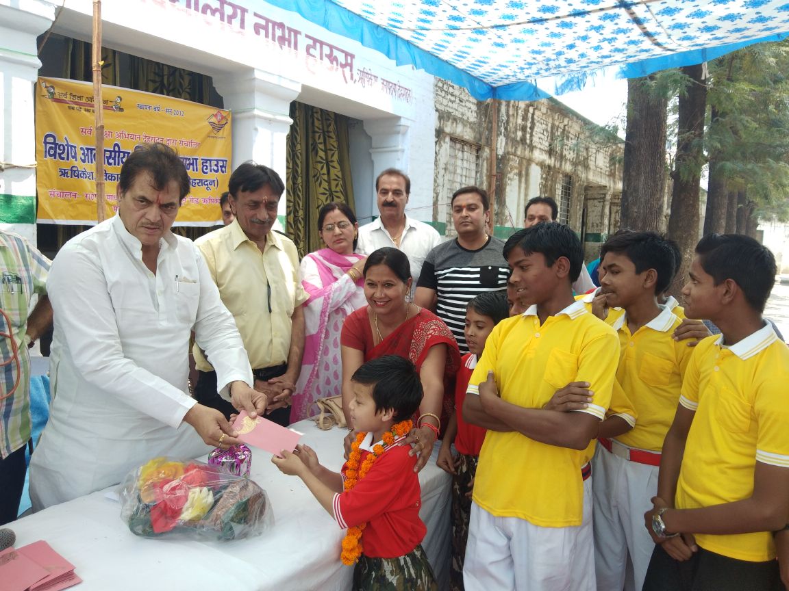 देहरादून। सर्व शिक्षा अभियान,देहरादून द्वारा संचालित विशेष आवासीय विद्यालय नाभा हाउस विद्यालय ,ऋषिकेश मैं 50 छात्र छात्राओं को विधानसभा अध्यक्ष विवेकाधीन कोष से प्रोत्साहन राशि के रूप में चेक वितरित किए गए ।इस अवसर पर विधानसभा अध्यक्ष प्रेम चंद अग्रवाल ने ग्रीष्मकालीन अवकाश पर जाने वाले छात्रों को अपनी बधाई एवं शुभकामनाएं दी ।