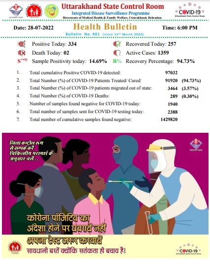 देहरादून – उत्तराखंड में आज कोरोना के 334 नए मामले मिले है।