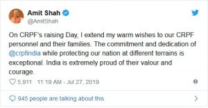 सीआरपीएफ का 81वां स्थापना दिवस आज, गृहमंत्री अमित शाह ने कहा- जवानों की वीरता और साहस पर गर्व…..