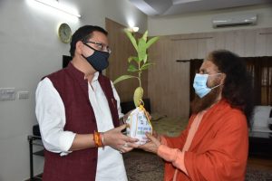 देहरादून– मुख्यमंत्री पुष्कर सिंह धामी से शुक्रवार को बीजापुर अतिथि गृह में परमार्थ निकेतन के स्वामी चिदानन्द सरस्वती ने शिष्टाचार भेंट की। उन्होंने मुख्यमंत्री को हरेला पर्व की बधाई दी तथा पौंधा भी भेंट किया।