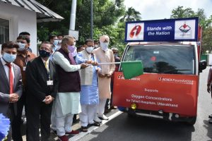देहरादून-मुख्यमंत्री पुष्कर सिंह धामी ने सीएम कैम्प कार्यालय में आयोजित कार्यक्रम में 80 आक्सीजन कन्सन्ट्रेटर राज्य के 9 जिलों के लिए रवाना किए। आईसीआईसीआई फाउन्डेशन द्वारा राज्य के ग्रामीण व अर्धशहरी क्षेत्रों के लिए ये 80 आक्सीजन कन्सन्ट्रेटर राज्य सरकार को उपलब्ध करवाए गए हैं। देहरादून, नैनीताल, उत्तरकाशी, अल्मोड़ा, चमोली, पौड़ी गढ़वाल, पिथौरागढ़, रूद्रप्रयाग और टिहरी जिलों में ये आक्सीजन कन्सन्ट्रेटर भेजे गए हैं। मुख्यमंत्री ने आभार व्यक्त करते हुए कहा कि सभी के सम्मिलित प्रयासों से कोविड से लड़ाई में जीत हासिल की जा सकती है। पिछले कुछ समय में कोविड संक्रमण के मामलों में कमी आई है, लेकिन अभी भी पूरी सावधानी व सतर्कता बरतने की आवश्यकता है। कोविड की तीसरी लहर की सम्भावनाओं को देखते हुए राज्य सरकार ने पूरी तैयारी की है। हेल्थ इन्फ्रास्ट्रक्चर को लगातार मजबूत किया जा रहा है।