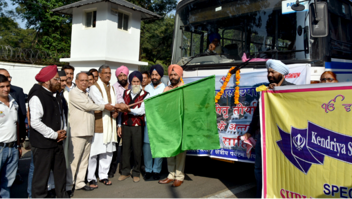 Dehradun: सोमवार को मुख्यमंत्री त्रिवेन्द्र सिंह रावत ने मुख्यमंत्री आवास में पं0 दीनदयाल उपाध्याय मातृ-पितृ तीर्थाटन योजना के अंतर्गत रीठा साहिब (नानकमत्ता) जा रही बस को हरी झंडी दिखाकर रवाना किया। श्रद्धालुओं की सुरक्षित व सुखमय यात्रा की शुभकामनाएं देते हुए मुख्यमंत्री त्रिवेन्द्र ने अधिकारियों से यात्रा रूट तथा अन्य सुविधाओं की जानकारी प्राप्त की। 36 वरिष्ठ यात्रियों के इस दल में 24 महिलायें तथा 12 पुरूष शामिल है। श्री रीठा सहिब (नानकमत्ता) की यात्रा का यह चार दिवसीय कार्यक्रम है। यात्री दल प्रथम दिन टनकपुर, दूसरे दिन रीठा-मीठा साहिब, तीसरे दिन रामनगर रूक कर चौथे दिन दिनांक 2 नवम्बर 2017 को वापस देहरादून लौटेंगे। प0 दीनदयाल मातृ-पितृ तीर्थाटन योजना के अन्तर्गत राज्य सरकार द्वारा आर्थिक रूप से अक्षम अधिक आयु के नागरिकों कों बद्रीनाथ धाम, गंगोत्री धाम, रीठा-मीठा साहिब (नानकमता साहिब) व निजामुद्दीन औलिया दिल्ली की निःशुल्क यात्रा मोटर मार्ग से करवाई जा रही है। बता दें कि अभी तक दो जत्थें भेजे जा चुके हैं।