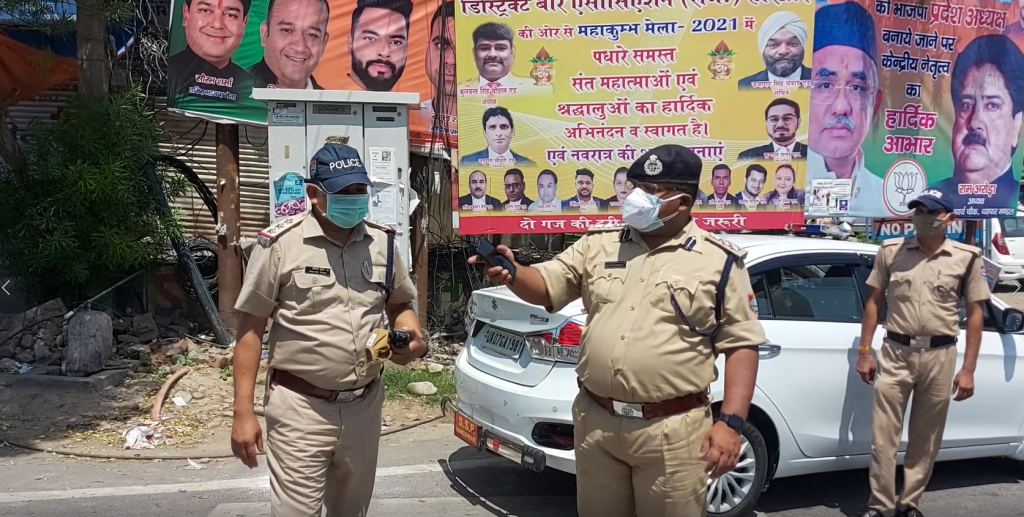 धर्म नगरी हरिद्वार में जिस तरीके से जिलाधिकारी द्वारा कर्फ्यू का आदेश जारी हुआ है उसको देखते हुए हरिद्वार के वरिष्ठ पुलिस अधीक्षक ने हरिद्वार की सड़कों पर उतर कर खुद मोर्चा संभाला ओर कर्फ्यू की व्यवस्था को देखा जिससे कि आवश्यक सेवाओं को छोड़कर अन्य सभी दुकानें और कार्यालय बंद रहे और लोग सड़कों पर अनावश्यक रूप से ना निकले जिससे कर्फ्यू लगाने का जो उद्देश्य है वह पूर्ण हो सके वही लोगों से अपील करते हुए हरिद्वार के वरिष्ठ पुलिस अधीक्षक ने कहा की अनावश्यक रूप से सड़कों पर लोग ना निकले ओर यह कर्फ्यू लोगों की भलाई के लिए है लोग इसका पूर्णता से पालन करें.