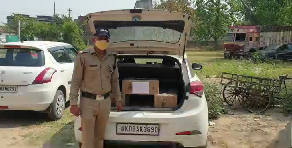 हरिद्वार : वरिष्ठ पुलिस अधीक्षक, हरिद्वार के निर्देशानुसार चौकी औद्योगिक क्षेत्र कोतवाली रानीपुर क्षेत्र में अवैध शराब की तस्करी के विरूध्द चलाये जा रहे अभियान के अन्तर्गत कोतवाली रानीपुर पुलिस द्वारा मुखबिर की सूचना पर सलेमपुर हाईवे से पथरी पावर हाउस जाने वाले रास्ते पर एक i20 कार रजिस्ट्रेशन न0-UK08AK3690 की डिग्गी से 6 पेटी अवैध अंग्रेजी शराब बरामद की एवं एक अभियुक्त सत्यम पुत्र रत्नेश यादव निवासी साईं मंदिर वाली गली बहादराबाद जनपद हरिद्वार को पकड़ा जिसने पूछने पर बताया कि यह शराब वह लॉकडाउन के दौरान बेचने के लिए ले जा रहा था। पकड़े गए अभियुक्त से बरामदा माल में 144 पव्वे इंपीरियल ब्लू मार्का एवं 144 पववे रॉयल स्टैग मार्का है। अभियुक्त को बरामदा माल अंग्रेजी शराब व i20 कार रंग सफेद सहित गिरफ्तार कर कब्जे पुलिस लिया गया तथा बरामदगी व गिरफ्तारी के पर मु0अ0सं0- 159/2021 धारा 60/72आब0 अधि0 बनाम सत्यम पंजीकृत किया गया।