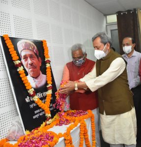 देहरादून- भाजपा प्रदेश मुख्यालय बलबीर रोड में पूर्व केंद्रीय राज्यमंत्री और पूर्व सांसद स्वर्गीय बच्ची सिंह रावत की श्रद्धांजलि सभा में प्रदेश अध्यक्ष मदन कौशिक तथा मुख्यमंत्री तीरथ सिंह रावत सहित वरिष्ठ नेताओं ने स्वर्गीय बच्ची सिंह रावत के चित्र के समक्ष पुष्प अर्पित कर उन्हें भावभीनी श्रद्धांजलि दी।