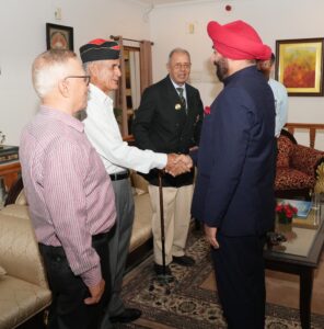 देहरादून – राज्यपाल लेफ्टिनेंट जनरल गुरमीत सिंह (से नि) से सोमवार को राजभवन में असम रेजिमेंट के पूर्व सैनिकों ने मुलाकात की। राज्यपाल ने असम रेजिमेंट में सेवाएं दी हैं। उन्होंने पूर्व सैनिकों से सेवा के दौरान अपने-अपने अनुभवों को साझा किया।
