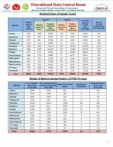 देहरादून- राज्य में कोरोना के आंकड़े थमने का नाम नहीं ले रहे हैं…आज फिर प्रदेश में 1618 नए कोरोना मामले सामने आए, जिसमे अल्मोड़ा में 110, बागेश्वर में 32, चमोली में 124, चम्पावत में  41, देहरादून में 505, हरिद्वार में 201, नैनीताल में 90, पौड़ी में 71, पिथौरागढ़ में 89, रुद्रप्रयाग में 101, टिहरी में 48, उधमसिंह नगर में 167, तो वहीँ उत्तरकाशी में 39 नए कोरोना संक्रमित मिले हैं…आपको बता दें कि  आज कोरोना से मरने वालों की संख्या 07 रही…