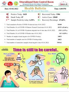 BREAKING- लगातार जारी है कोरोना के आंकड़े, आज मिले 1618 नए मामले, 07 की मौत…