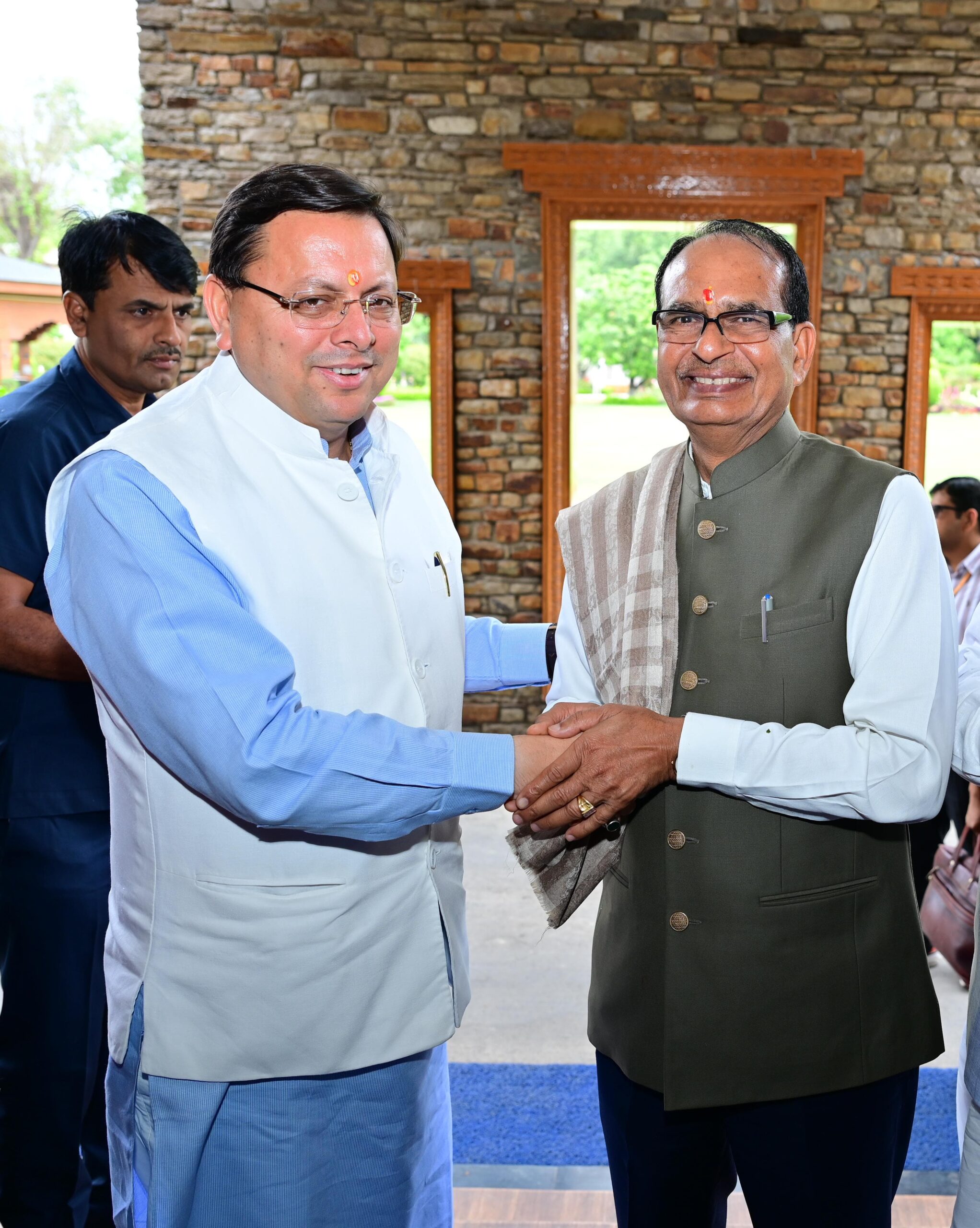 देहरादून: मुख्यमंत्री पुष्कर सिंह धामी ने सोमवार को मुख्यमंत्री आवास में केंद्रीय कृषि एवं कृषक कल्याण तथा ग्रामीण विकास मंत्री शिवराज सिंह चौहान का स्वागत और अभिनंदन किया।
