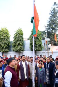 देहरादून – 75 में गणतंत्र दिवस के मौके पर मुख्यमंत्री पुष्कर सिंह धामी ने सुबह 9:00 बजे सीएम आवास में झंडा फहरा है उसके बाद 9:30 बजे भाजपा मुख्यालय पहुंचे। जहां उन्होंने ध्वजारोहण किया।