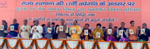 गुरूवार को सूचना भवन में मुख्यमंत्री त्रिवेन्द्र सिंह रावत ने आयोजित समारोह में सूचना एवं लोक सम्पर्क विभाग की विकास पुस्तिका ‘‘संकल्प से सिद्धि तक………..’’ का विमोचन किया। राज्य स्थापना दिवस की 17वीं वर्षगांठ पर आयोजित समारोह में मुख्यमंत्री त्रिवेन्द्र सिंह रावत ने सहकारिता विभाग द्वारा संचालित ‘दीन दयाल उपाध्याय किसान कल्याण योजना’ का देहरादून में शुभारम्भ करते हुए किसानों को स्वीकृत ऋण के चेक भी वितरित किये। मुख्यमंत्री ने वर्ष 2016-17 हेतु देवभूमि उत्तराखण्ड खेल रत्न पुरस्कार और देवभूमि उत्तराखण्ड द्रोणाचार्य पुरस्कार भी प्रदान किये। खेल रत्न पुरस्कार प्रसिद्ध महिला अन्तर्राष्ट्रीय क्रिकेट खिलाड़ी एकता बिष्ट तथा द्रोणाचार्य पुरस्कार उनके कोच लियाकल अली को प्रदान किया गया। एकता बिष्ट की अनुपस्थिति में उनके माता-पिता ने यह पुरस्कार ग्रहण किया। इसी कार्यक्रम में ईको टास्क फार्स के शहीदों की पत्नियों, चन्द्रकला नेगी पत्नी स्व.राइफलमैन बिक्रम सिंह नेगी तथा राजेश्वरी देवी पत्नी स्व.राइफलमैन धर्मसिंह रावत को भी मुख्यमंत्री द्वारा सम्मानित किया गया। कार्यक्रम में उत्तराखण्ड जल संस्थान के अधिशासी अभियंता विनोद चन्द रमोला को उनके दायित्वों के कुशल निर्वहन हेतु उनके विभाग द्वारा प्रशस्ति पत्र प्रदान किया गया।