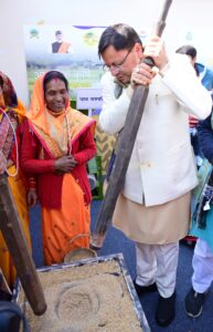 मुख्यमंत्री ने पहाड़ की पारंपरिक वस्तुओं को बढ़ावा देने के उदेश्य से रांछ पर कालीन बुनाई, पहाड़ की पारंपरिक चक्की (जांदरा) चलाया, पैडल चरखे पर ऊन कताई, रिंगाल की टोकरी बुनने और दुर्लभ भोजपत्र पर कैलीग्राफी भी की और महिला समूहों के साथ विभिन्न क्रियाकलाप कर स्थानीय संस्कृति को जाना और अपनी पुरानी यादों को साझा किया। मुख्यमंत्री ने उत्पादों की सराहना करते हुए यात्रा मार्ग पर भी आउटलेट खोलने एवं पारंपरिक तरीके से बन रहे कालीन, पंखी, दोखे, शौल, टोपी आदि का खूब प्रचार करने को कहा। मुख्यमंत्री ने लेन्टाना घास से बनाई गई उपयोगी सामग्री की भी सराहना की।
