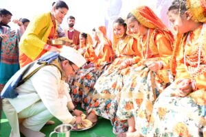 चमोली/गौचर – मुख्यमंत्री पुष्कर सिंह धामी ने बृहस्पतिवार को गौचर में आयोजित ‘नंदा-गौरा’ महोत्सव में प्रतिभाग किया। उन्होंने कहा कि हमारी मातृशक्ति प्रधानमंत्री नरेंद्र मोदी द्वारा दिए गए आत्मनिर्भर भारत और वोकल फॉर लोकल’’ के मंत्र को धरातल पर उतारने का काम कर रही है। मातृशक्ति के सहयोग से ही हमारा राष्ट्र उन्नति के नए शिखर को छू रहा है। इस अवसर पर मुख्यमंत्री ने सीमांत जनपद चमोली के लिये 400 करोड से अधिक़ की 604 विकास योजनाओं का लोकापर्ण एवं शिलान्यास किया। जिसमें 97 करोड लागत़ की 260 योजनाओं का लोकार्पण तथा 303 करोड़ की 344 योजनाओं का शिलानयास शामिल है। इस दौरान मुख्यमंत्री ने कन्या पूजन कर मातृशक्ति को भी सम्मानित किया।