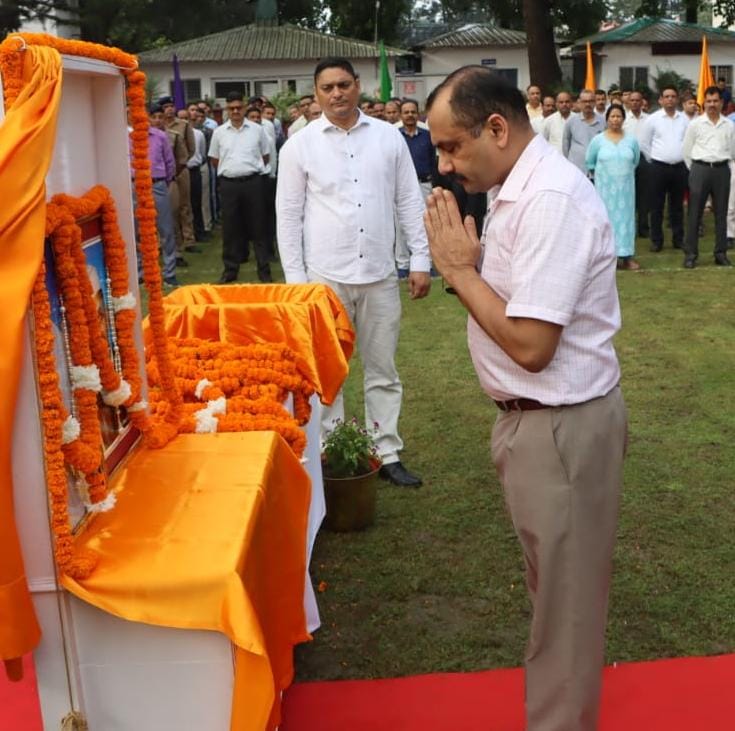 देहरादून – राष्ट्रपिता महात्मा गाँधी की जयंती के पुण्य अवसर पर आज पुलिस मुख्यालय में आयोजित कार्यक्रम में पुलिस महानिदेशक उत्तराखण्ड अभिनव कुमार सहित उपस्थित सभी अधिकारियों व कर्मचारियों द्वारा राष्ट्रपिता महात्मा गाँधी एवं पूर्व प्रधानमंत्री लाल बहादुर शास्त्री के चित्रों पर माल्यार्पण कर श्रद्धासुमन अर्पित किये गये।