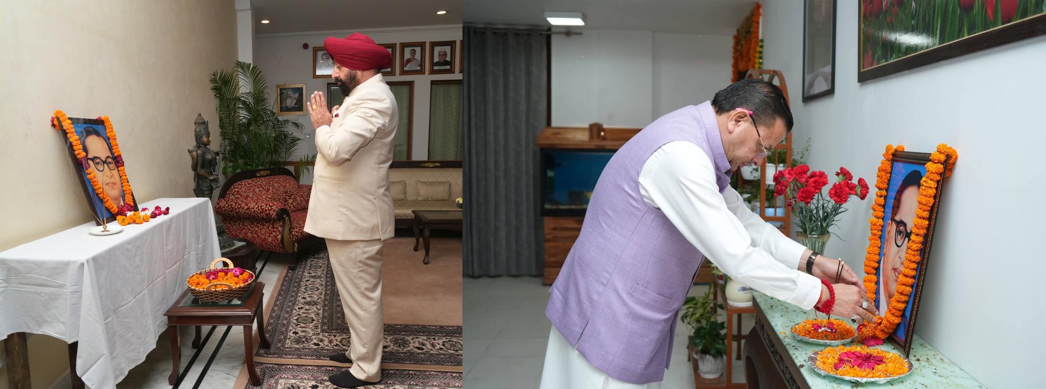 देहरादून : भारतीय संविधान के शिल्पकार एवं भारत रत्न डॉ. भीमराव आंबेडकर जी की जयंती के अवसर पर राज्यपाल लेफ्टिनेंट जनरल गुरमीत सिंह (से नि) ने उन्हें श्रद्धांजलि अर्पित की। इसके साथ ही सीएम धामी ने मुख्यमंत्री आवास में उनके चित्र पर पुष्प अर्पित कर उनका भावपूर्ण स्मरण किया ।