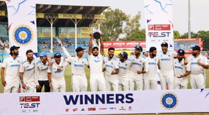कानपूर – भारत ने बांग्लादेश को कानपुर टेस्ट में सात विकेट से हराकर दो मैचों की टेस्ट सीरीज 2-0 से अपने नाम कर ली है। टीम इंडिया को 95 रन का लक्ष्य मिला था, जिसे रोहित एंड कंपनी ने तीन विकेट गंवाकर हासिल कर लिया।