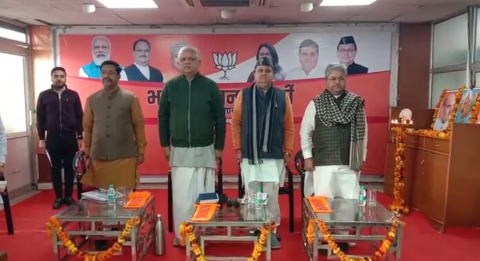 देहरादून – भाजपा प्रदेश कार्यालय में आज लोकसभा चुनाव को लेकर महत्वपूर्ण बैठक हो रही है। भाजपा के राष्ट्रीय महामंत्री संगठन बीएल संतोष चुनाव प्रभारी दुष्यंत गौतम भाजपा प्रदेश अध्यक्ष महेंद्र भट्ट के साथ कई पदाधिकारी बैठक में शामिल है।