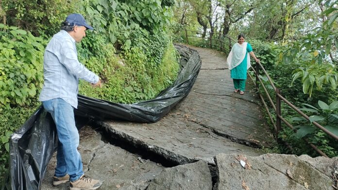 मसूरी : झड़ीपानी क्षेत्र में हाल की भारी बारिश के बाद जमीन धंसने लगी है, जिससे सड़कों और घरों में गहरी दरारें पड़ गई हैं। 15 सितंबर की रात हुए भूस्खलन में एक नेपाली मजदूर की मौत हो गई थी। लोग डरे हुए हैं और अपने घरों से बाहर शरण लेने को मजबूर हैं। महिलाएं बच्चों को स्कूल भेजने में भी डर महसूस कर रही हैं।