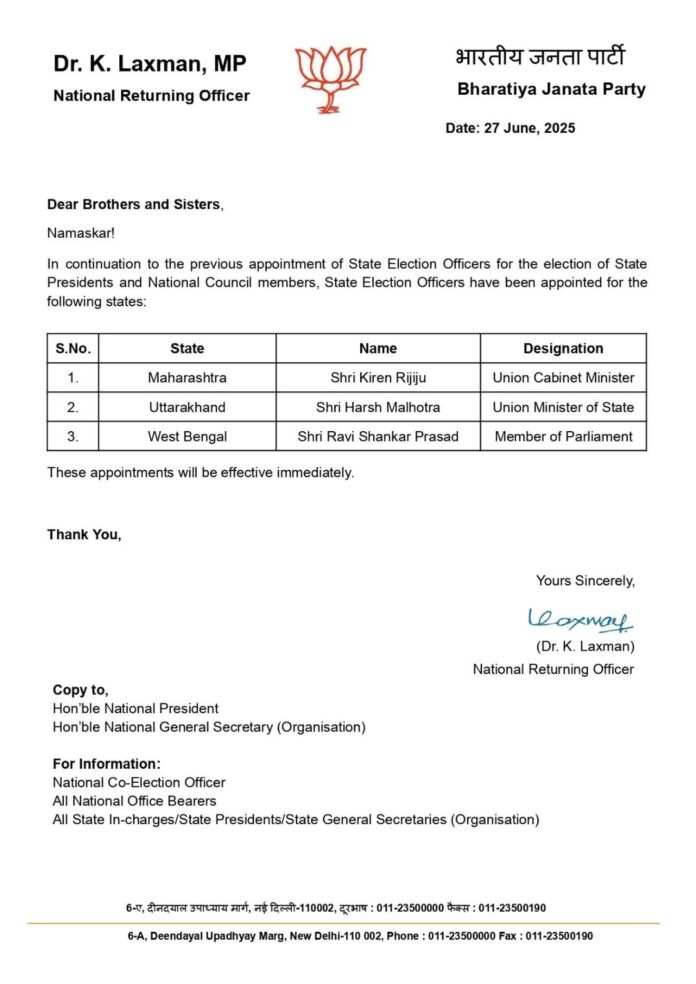 हर्ष मल्होत्रा प्रदेश संगठन चुनाव की पूरी निगरानी करेंगे और आगे की चुनावी प्रक्रिया में अहम भूमिका निभाएंगे। पार्टी सूत्रों के अनुसार, 1 जुलाई तक उत्तराखंड भाजपा को नया प्रदेश अध्यक्ष मिल जाएगा, उससे पहले सभी आवश्यक चुनावी तैयारियां पूरी कर ली जाएंगी।