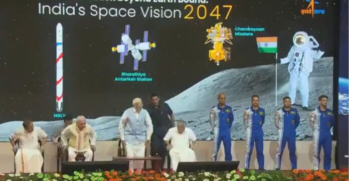 केरल/तिरुवनंतपुरम – प्रधानमंत्री नरेंद्र मोदी ने भारत के पहले अंतरिक्ष मानव मिशन पर जाने वाले चार भारतीयों को आज सम्मानित किया। अंतरिक्ष में जाने वाले अंतरिक्ष यात्रियों में ग्रुप कैप्टन प्रशांत नायर, ग्रुप कैप्टन अजीत कृष्णन, ग्रुप कैप्टन अंगद प्रताप और विंग कमांडर शुभांशु शुक्ला शामिल हैं। प्रधानमंत्री मंगलवार को केरल के तिरुवनंतपुरम पहुंचे, जहां उन्होंने विक्रम साराभाई अंतरिक्ष केंद्र का दौरा किया और भारत के पहले अंतरिक्ष मानव मिशन गगनयान की तैयारियों की समीक्षा की। इस दौरान इसरो प्रमुख एस सोमनाथ, केरल के सीएम पी विजयन और राज्यपाल आरिफ मोहम्मद खान भी मौजूद रहे।
