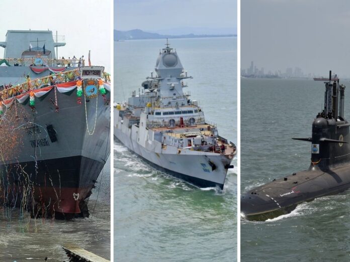 मुंबई – प्रधानमंत्री नरेंद्र मोदी ने आज मुंबई में भारतीय नौसेना के तीन अत्याधुनिक युद्धपोतों को राष्ट्र को समर्पित किया। इनमें आईएनएस सूरत, आईएनएस नीलगिरी और आईएनएस वाघशीर शामिल हैं। इस अवसर पर प्रधानमंत्री मोदी को गार्ड ऑफ ऑनर दिया गया और रक्षा मंत्री राजनाथ सिंह सहित अन्य वरिष्ठ नेताओं और नौसेना के अधिकारियों की उपस्थिति रही।