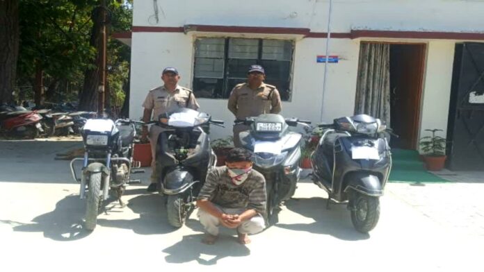 देहरादून : उत्तराखंड में नशे की लत के शिकार युवाओं द्वारा बाइक चोरी की घटनाएं बढ़ती जा रही हैं। पुलिस ने वाहन चोरी के मामलों में कई युवकों को गिरफ्तार किया है, लेकिन यह सिलसिला लगातार जारी है। हाल ही में, पुलिस ने एक और बाइक चोरी के मामले का खुलासा किया है, जिसमें एक युवक नशे की लत और नई-नई गाड़ियों की सवारी करने की चाहत के कारण वाहन चोरी करता था। यह युवक पहले भी कई मामलों में जेल जा चुका है।