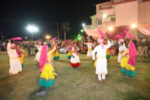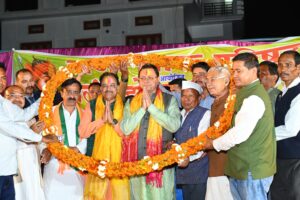 देहरादून – मुख्यमंत्री पुष्कर सिंह धामी ने बुधवार को राणा थारू विकास भवन, खटीमा में राणा थारू परिषद, खटीमा द्वारा आयोजित होली मिलन समारोह में प्रतिभाग किया। इस अवसर पर राणा थारू परिषद के वरिष्ठजनों, पदाधिकारियों एवं कलाकारों द्वारा मुख्यमंत्री का भव्य एवं होली के रंग लगाकर स्वागत किया गया। मुख्यमंत्री ने जनजाति समाज के लोगो के साथ होली नृत्य भी किया।