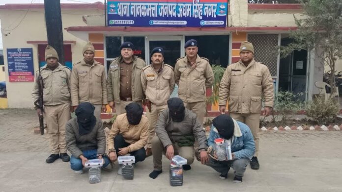रुद्रपुर/उधम सिंह नगर – उधम सिंह नगर जनपद पुलिस ने 2.744 किलोग्राम चरस के साथ चार नशा तस्करों को गिरफ्तार किया है। यह चरस की खेप पांच लाख रुपये की कीमत की बताई जा रही है। आरोपियों ने पहाड़ से चरस की खेप लाकर जनपद में सप्लाई करने की योजना बनाई थी, लेकिन पुलिस ने उन्हें चरस सप्लाई करने से पहले ही गिरफ्तार कर लिया।
