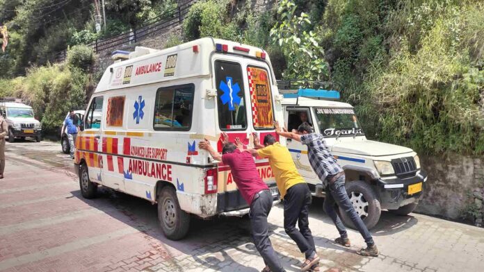 थराली, चमोली : आपातकालीन सेवा देने वाली 108 एम्बुलेंस खुद ‘आपात स्थिति’ में आ गई जब थराली सामुदायिक स्वास्थ्य केंद्र से रवाना हुई एम्बुलेंस थराली मुख्य बाजार में खराब हो गई। सौभाग्य से उस वक्त एम्बुलेंस में कोई मरीज मौजूद नहीं था, लेकिन स्थानीय लोगों को धक्का लगाकर एम्बुलेंस को सड़क किनारे करना पड़ा।