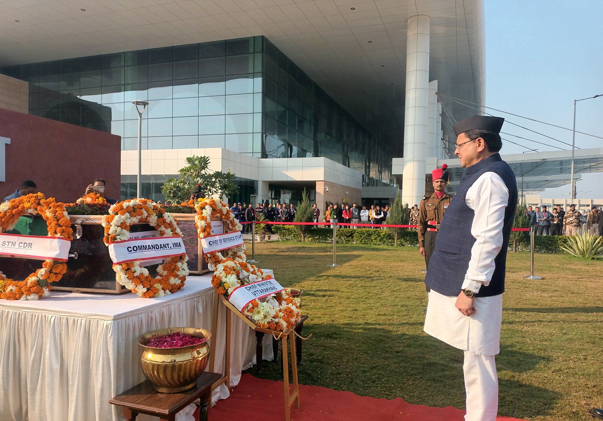 यहां सेना ने शहीदों को गार्ड ऑफ ऑनर दिया। वहीं, सीएम धामी ने भी शहीदों को श्रद्धांजलि दी। साथ ही परिजनों को ढांढस बंधाया। इसके बाद दोनों के शहीदों के पार्थिव शरीरों को सेना के हेलीकॉप्टर से उनके घर के लिए रवाना किया गया।