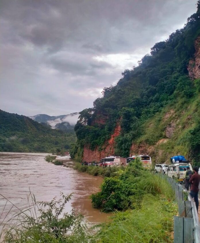 श्रीनगर (पौड़ी): उत्तराखंड में लगातार हो रही बारिश का असर अब राष्ट्रीय राजमार्गों और धार्मिक स्थलों पर भी दिखने लगा है। जनपद पौड़ी के श्रीनगर स्थित बदरीनाथ राष्ट्रीय राजमार्ग (NH-7) पर सिरोबगड़ के पास दो स्थानों पर मलबा और पानी आने से यातायात पूरी तरह बाधित हो गया है। एहतियातन प्रशासन ने कई स्थानों पर वाहनों को रोक दिया है और लोगों से अनावश्यक यात्रा न करने की अपील की है।