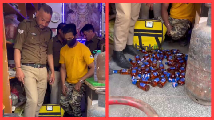 ऑनलाइन डिलीवरी कंपनी के बैग से कर रहा था शराब तस्करी