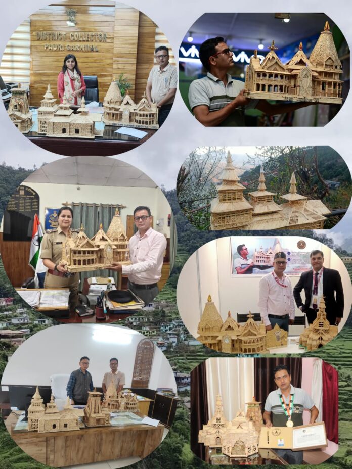 पौड़ी गढ़वाल (उत्तराखंड): सरकारी स्कूल में कार्यरत शिक्षक पंकज सुन्दरियाल ने माचिस की तीलियों से भगवान श्रीराम के अयोध्या मंदिर की एक भव्य प्रतिकृति तैयार कर पूरे देश को चौंका दिया है। इस अद्भुत कलाकृति को बनाने में उन्हें पूरे 3 साल का समय लगा।